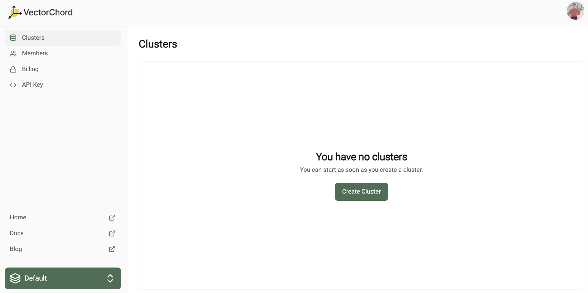 After signing up, you are directed to the VectorChord Cloud Console. We will create a default project.