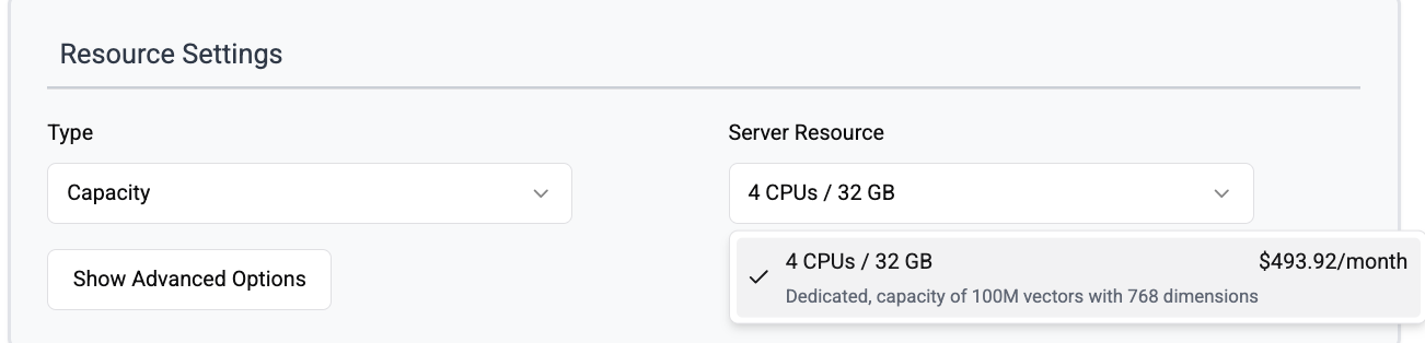 - Capacity of 100k vectors with 1024 dimensions, this is an estimate, and you can also insert 25k vectors with 4096 dimensions.